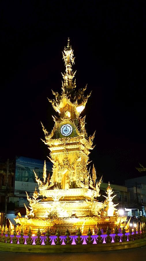 Beleuchteter Clocktower am Abend in Chiang Rai