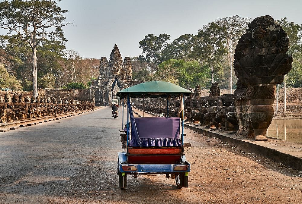 Das Tuk Tuk ist eines der gebräuchlichsten Fortbewegungsmittel in Kambodscha. Die Tuk Tuk-Fahrer kennen sich bestens aus und kennen genau den Weg zu den schönsten Angkor-Tempeln.